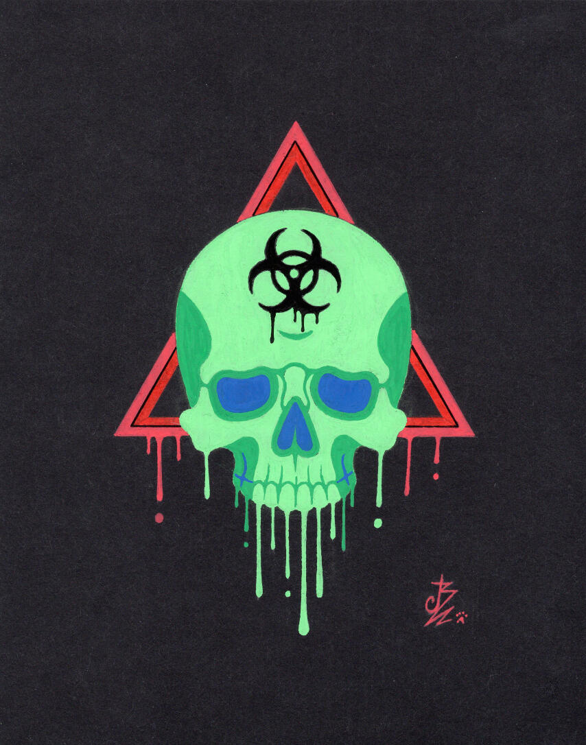 Bien qu'il m'arrive de dessiner des mignonneries, mes oeuvres ont plutôt une sombre atmosphère et les crânes sont mon sujet favori.